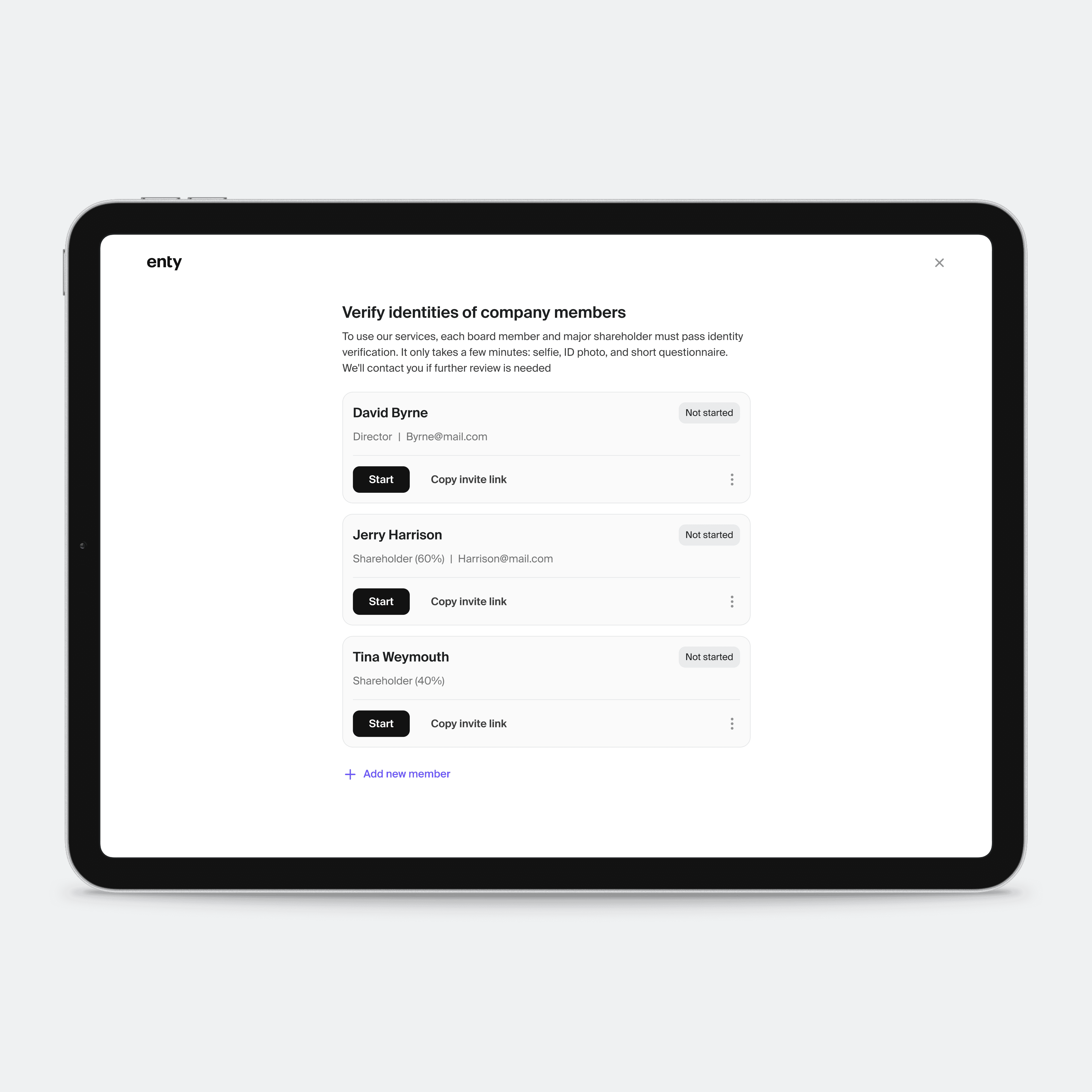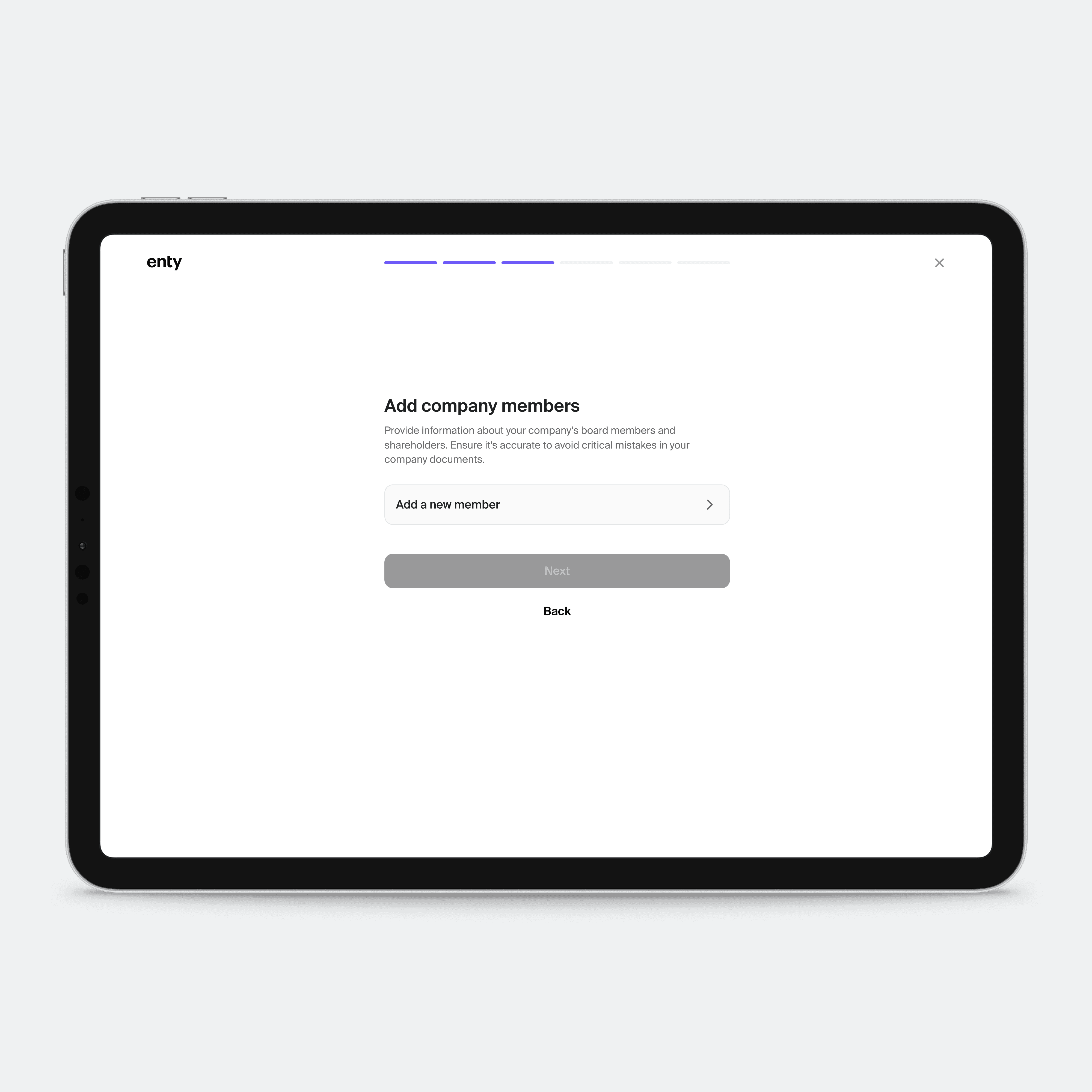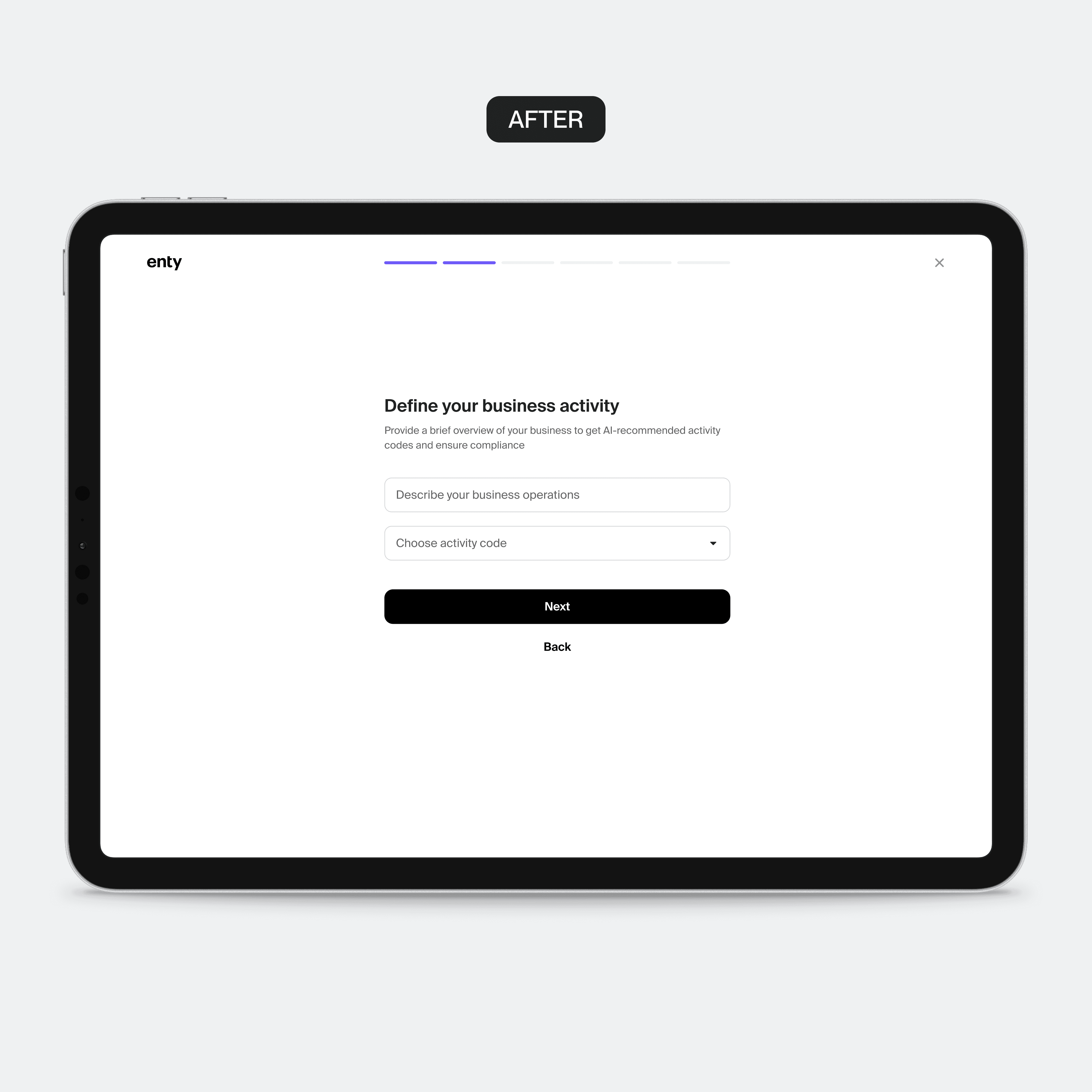 At Enty, we needed a smoother way to guide users through company setup. Onboarding was outdated, cluttered, and desktop-only, while incorporation relied on emails and managers outside the platform.