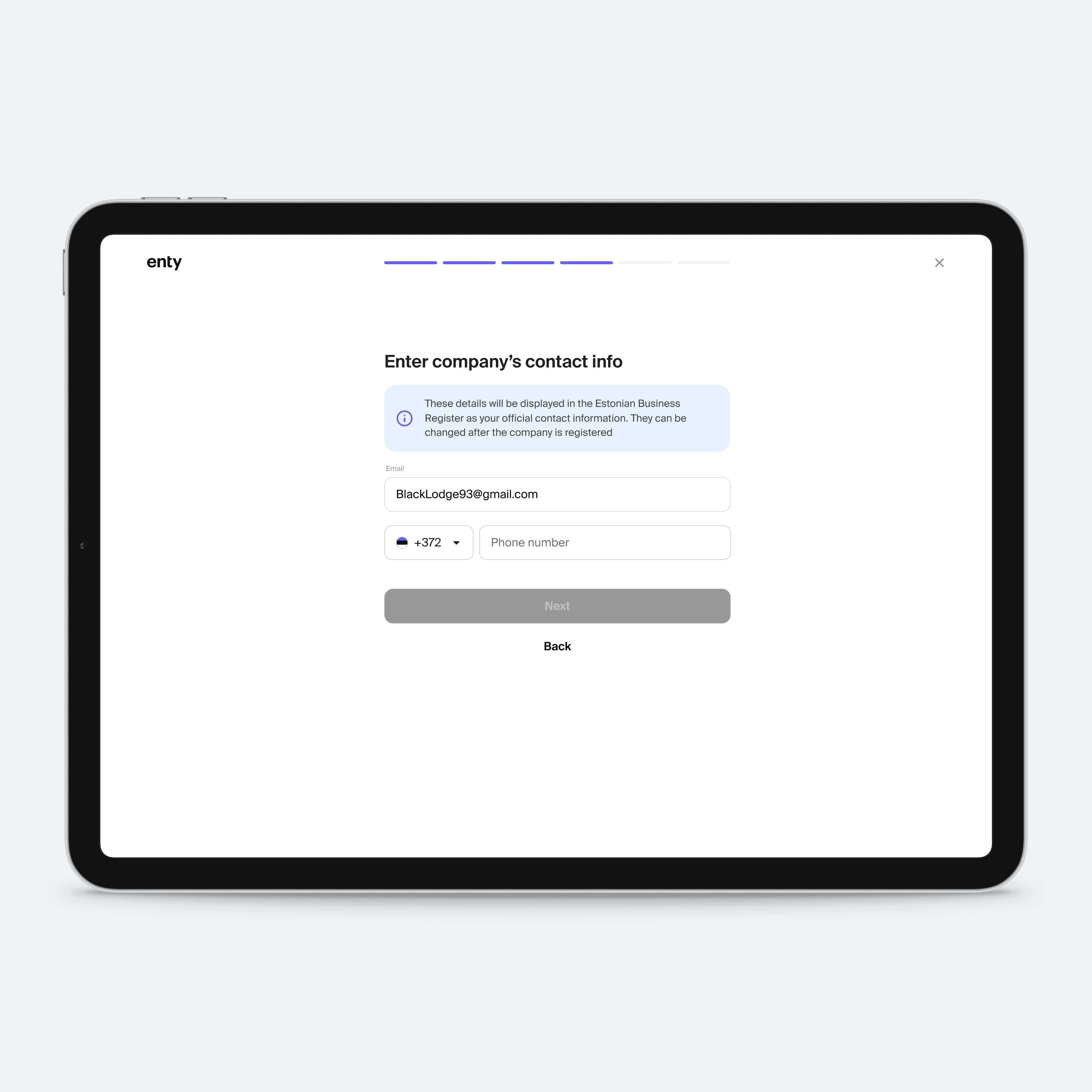 The existing design was outdated both visually and mechanically. To reduce cognitive load, I split the user form into clear, step-by-step screens — making it easier to complete and naturally mobile-friendly. I also introduced field autosave and an AI-powered business category suggestion from the Estonian registry, further streamlining the process and reducing friction